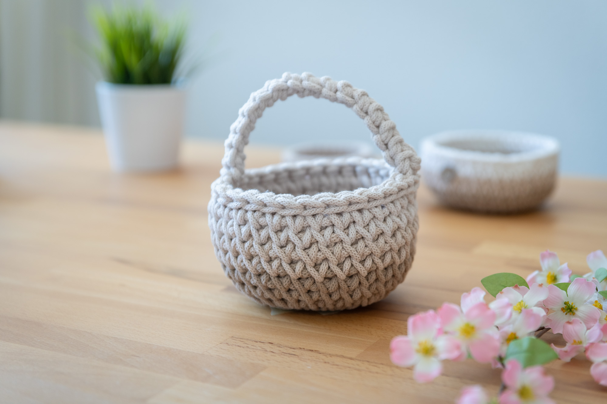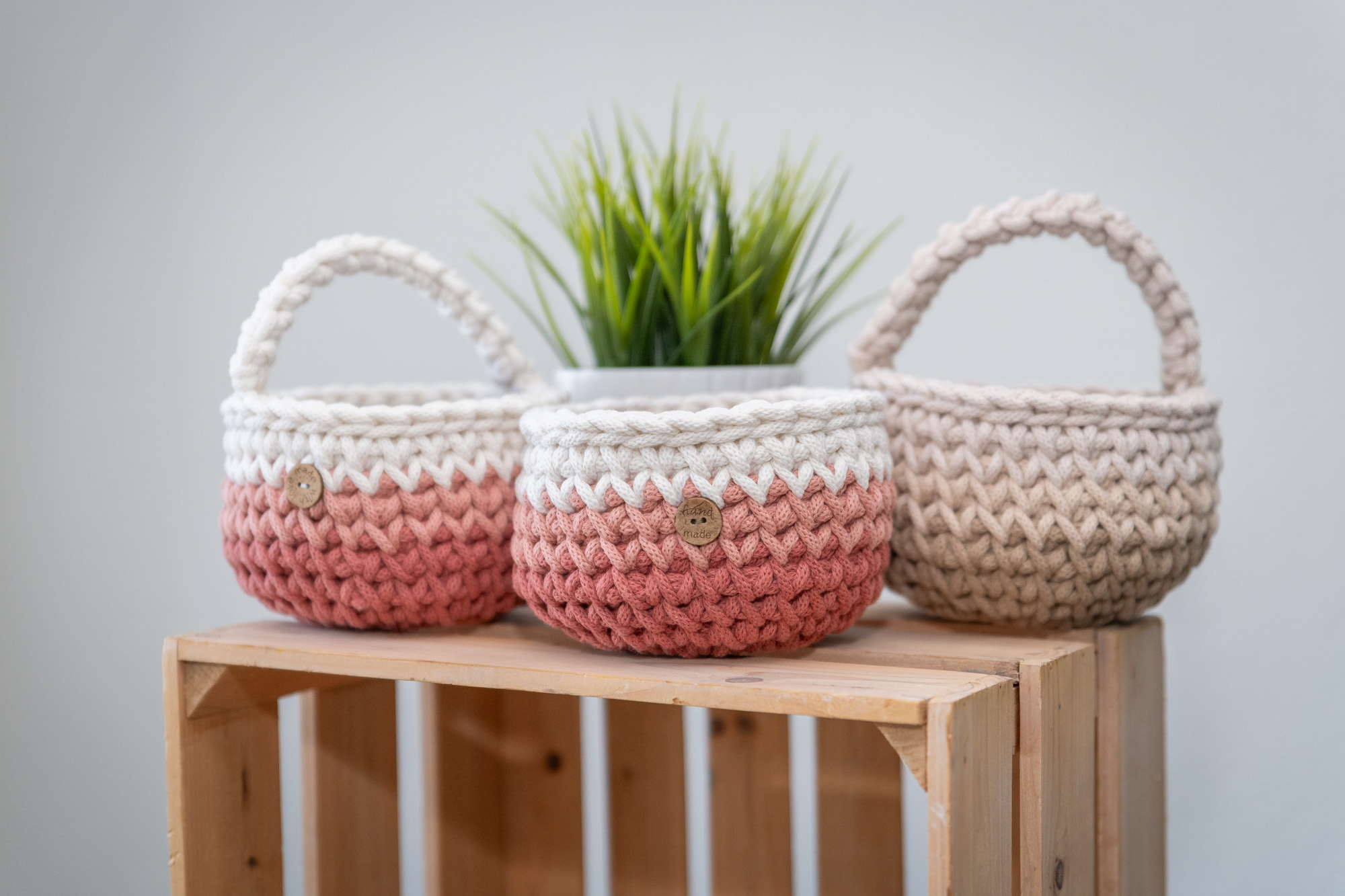 Dieses charmante Häkelkörbchen im sanften Farbverlauf bringt Wärme und Natürlichkeit in dein Zuhause. Der praktische Henkel macht es zum idealen Begleiter für kleine Alltagshelfer – ob als Osterkörbchen, für Schlüssel, Schmuck oder als liebevolle Verpackung für kleine Geschenke.