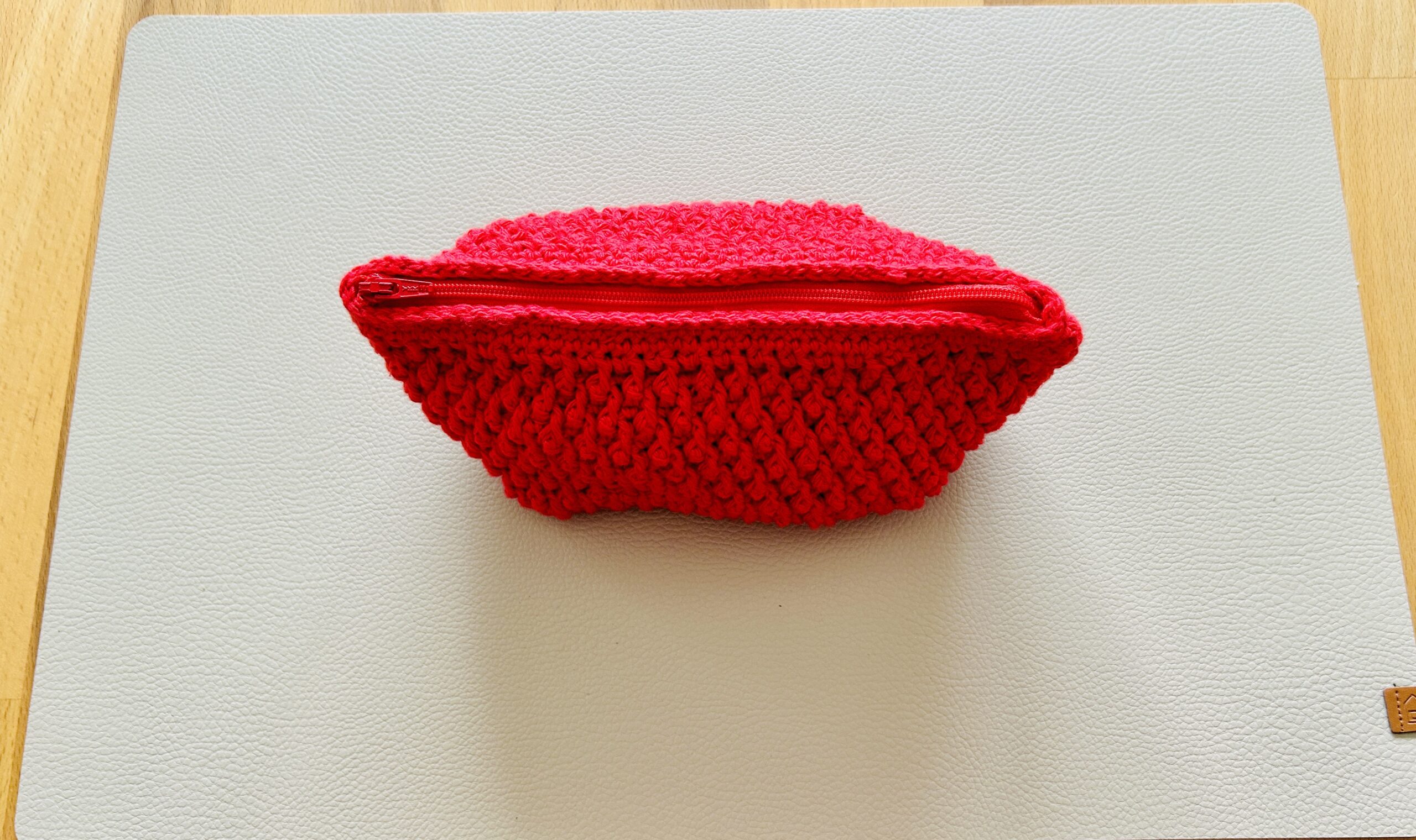 Handgehäkeltes Kosmetiktäschchen in leuchtendem Rot