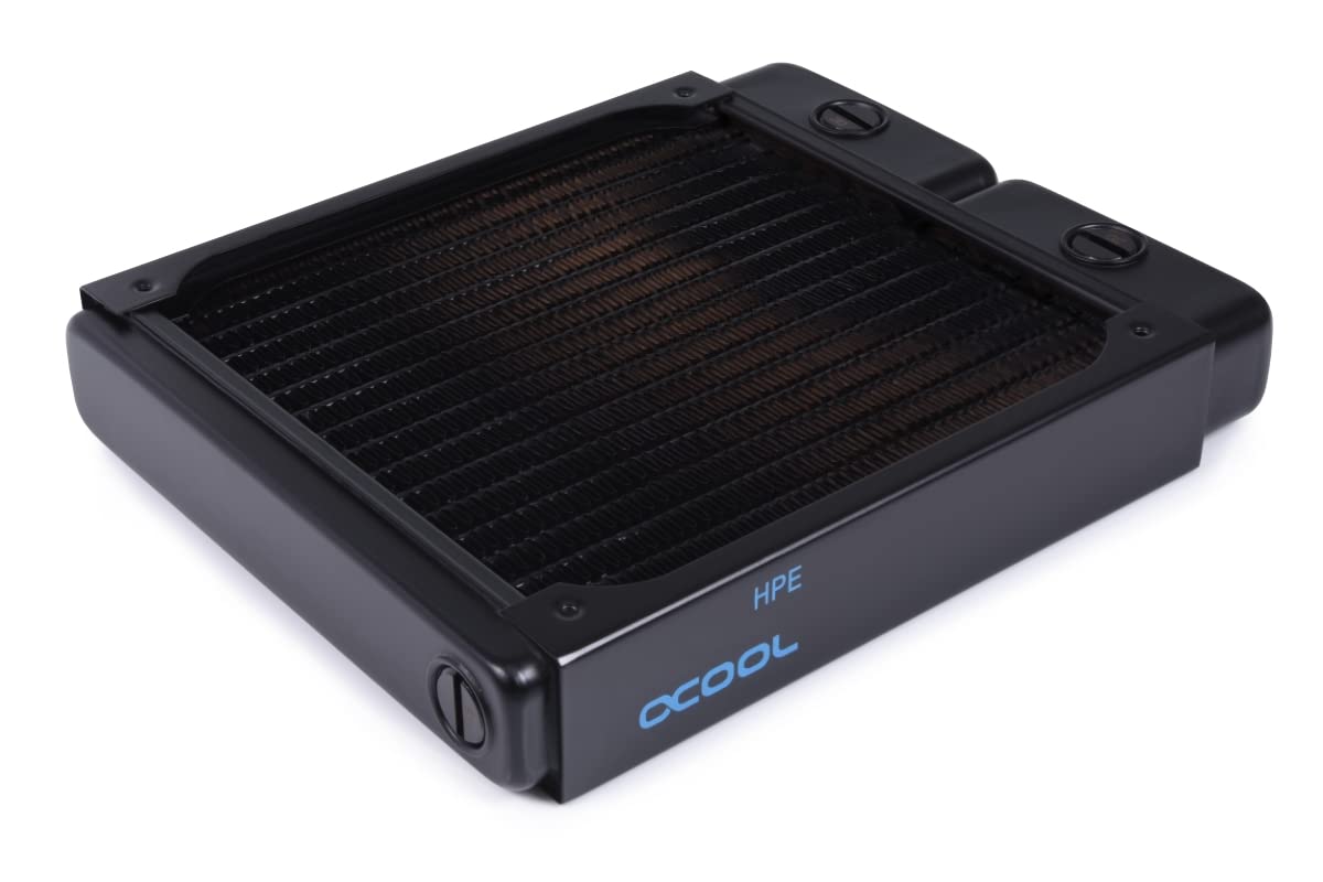 For more than a decade, Alphacool has dominated the market with the NexXxoS Full Copper radiator series. Our extensive portfolio of radiator variants is unique in the world. Just like our manufacturing process, which allows us to produce all water-carrying parts and the cooling fins out of pure copper. As a result, the NexXxoS series offers the highest thermal conductivity of any radiator on the market. Thanks to their exceptional performance, the radiators can easily dissipate even extremely high waste heat and have become essential in many areas of the cooling industry.The next step in evolution: NexXxoS HPE Full Copper Radiator!The NexXxos Full Copper HPE Radiator uses the same materials as previous NexXxos models, but takes it a step further technically. Due to the condensed internal structure, the number of water channels and copper fins could be increased. Thus, a larger volume of water is in direct contact with the cooling fins and the heat transfer is enormously improved. The higher number of fin rows and their shortening also makes much more efficient use of the cooling surface. Comparison tests* with the conventional NexXxos radiator have shown that a performance increase of 4.5K is possible when using the HPE radiator. At higher ambient temperatures and higher fan speeds, the performance gap with the normal NexXxoS radiators even increases progressively, reaching a possible performance increase of up to 6K.Connection options & mountingThe NexXxoS HPE radiator has two IN or OUT connections with G1/4" threads in the pre-chamber area. On the opposite side is a fill or drain port, which can be used for filling and draining the water circuit. All screws for mounting in the case and for mounting the fans are included with the radiator. Additional sc